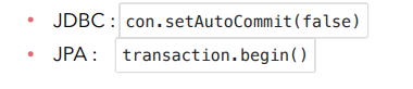jdbc의 경우 수동 커밋이 set인데 jpa는 begin입니다. 이 두개가 완전히 달라서 트랜잭션을 사용하는 코드가 다르니 서비스 계층을 다 바꿔야합니다. jdbc를 사용하다가 jpa로 변경하면 서비스 계층 코드도 함께 수정해야합니다.
