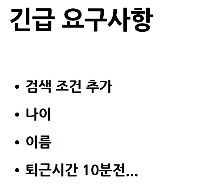 갑자기 요구사항이 추가됐습니다. 나이, 이름의 검색 조건을 추가해야합니다. 너무 쉽습니다. sql에 where로 나이와 이름 넣으면 됩니다.