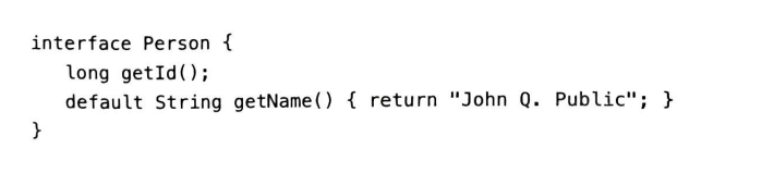 자바 8부터는 인터페이스에 정적 메서드도 추가할 수 있습니다. 상당히 많은 인터페이스에 정적메서드를 추가했고 예를들어 Comparator 인터페이스는 '키 추출' 함수를 받아서 추출된 키들을 비교하는 비교자를 돌려주는 아주 유용한 정적 Comparing 메서드를 제공합니다. person 객체를 이름으로 비교하려면 Comparator.comparing(Peson::name)을 사용하면 됩니다.